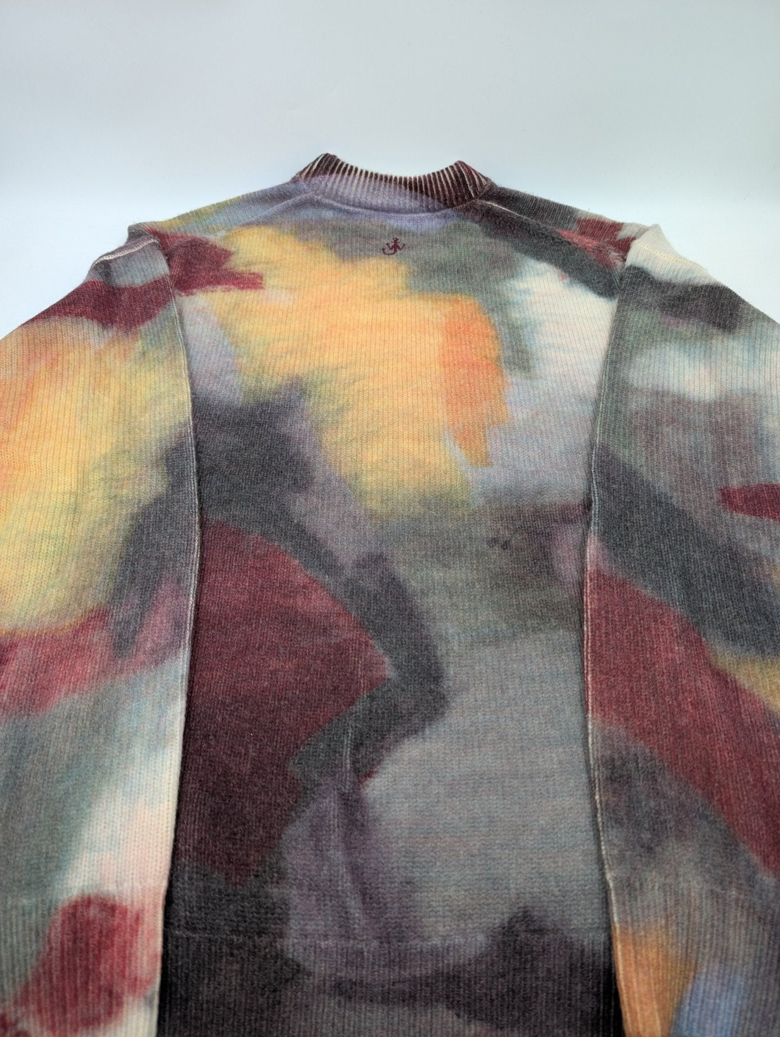 Der J.W. Anderson Abstract Printed Strickpullover ist ein locker geschnittener Sweatshirt-Pullover der Marke J.W. Anderson mit abstraktem All-over-Print und sichtbarer Anker-Stickerei auf der Rückseite. Das Model ist 185 cm groß, wiegt 75 kg und trägt Größe M; der Fit ist oversized. Es handelt sich um originale Markenware aus Überbeständen zu attraktivem Preis.