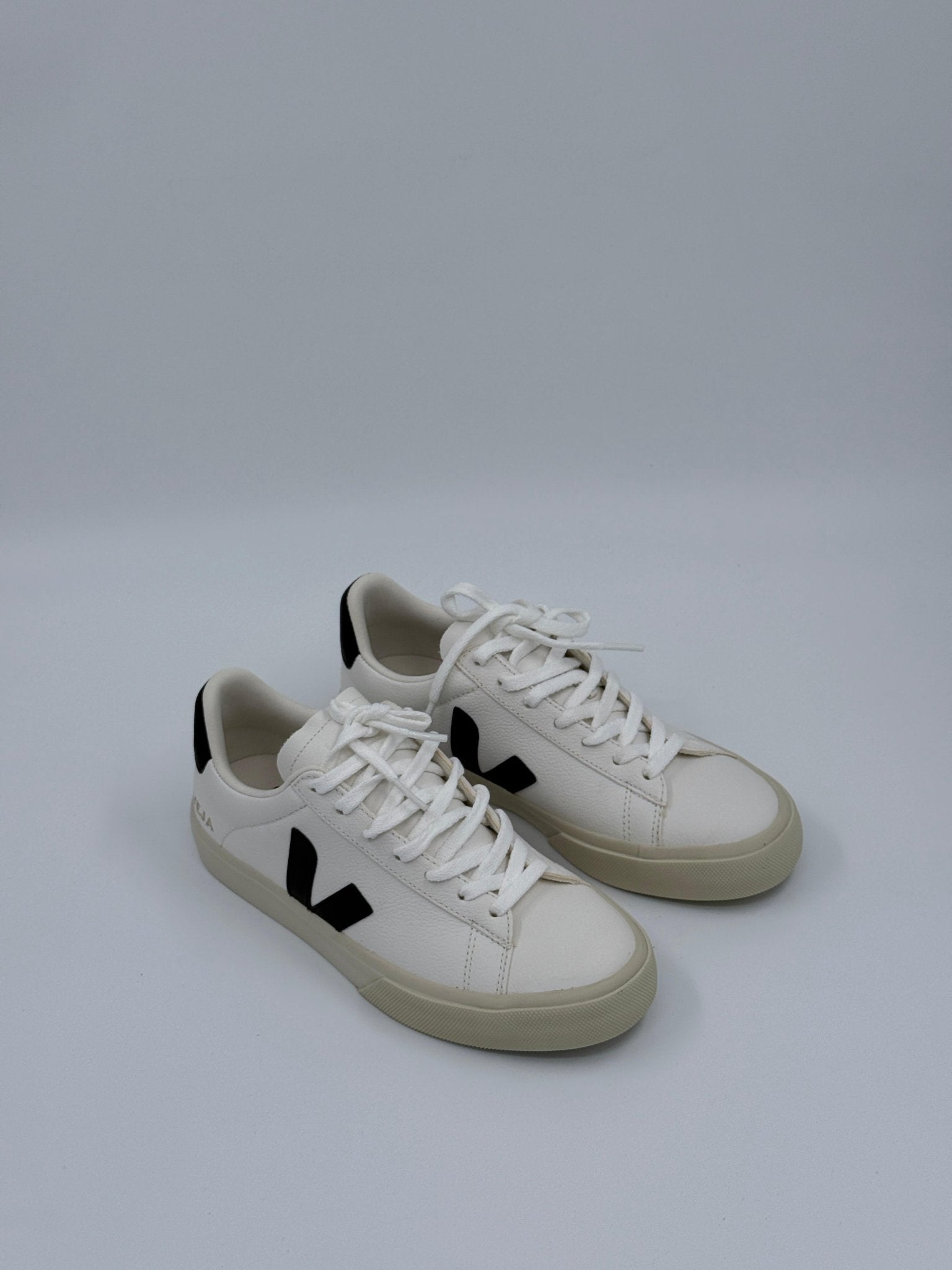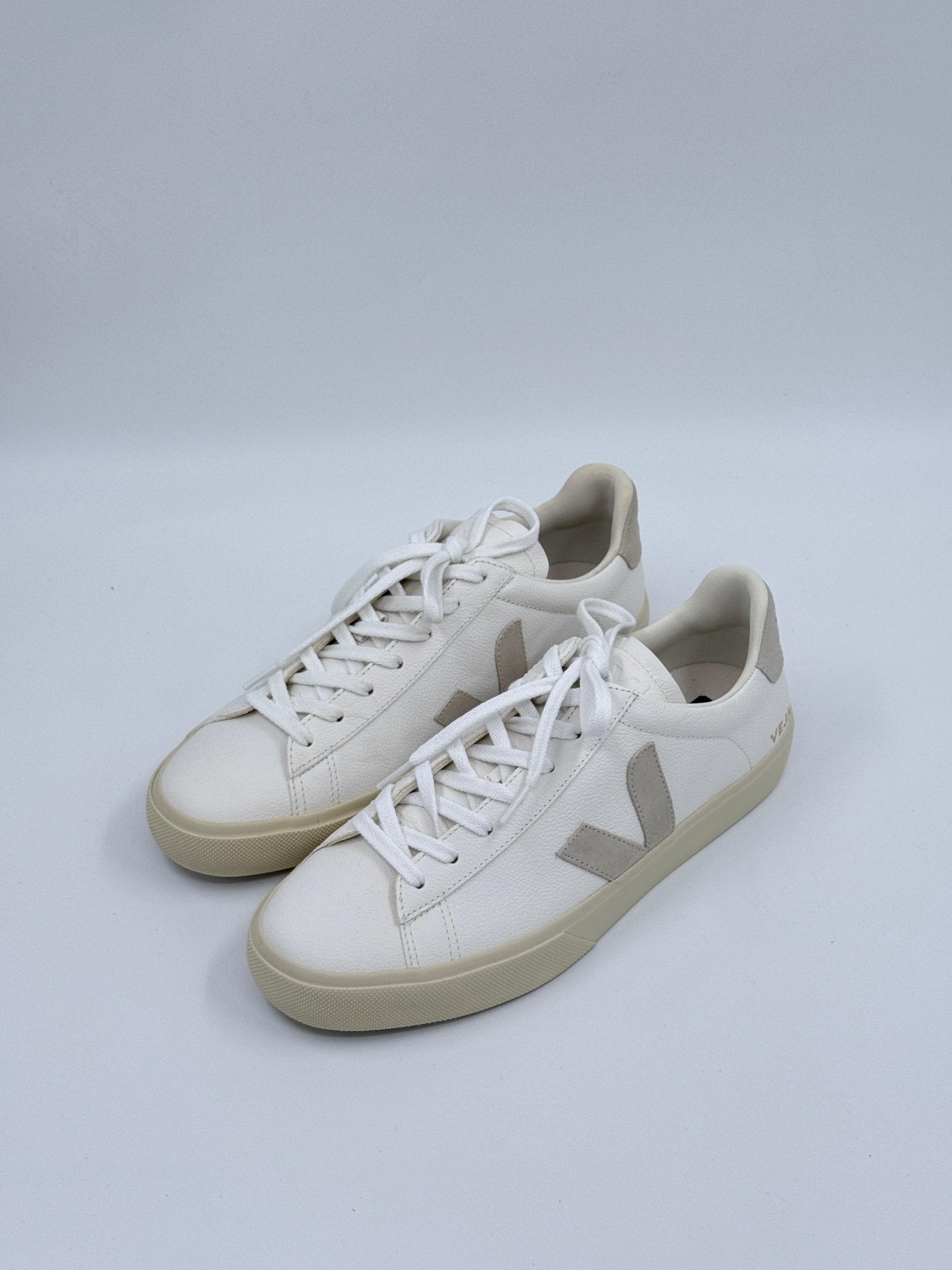 Die Veja Campo Chromefree Leather Sneaker sind originale Markenware aus Überbeständen zu attraktivem Preis. Der Low-Top-Sneaker zeigt ein klares, minimalistisches Design in klassischem Weiß mit natürlichen Akzenten und besteht aus chromfreiem Leder; zusätzlich sind Futter aus 100% recyceltem Polyester und eine Gummilaufsohle angegeben.