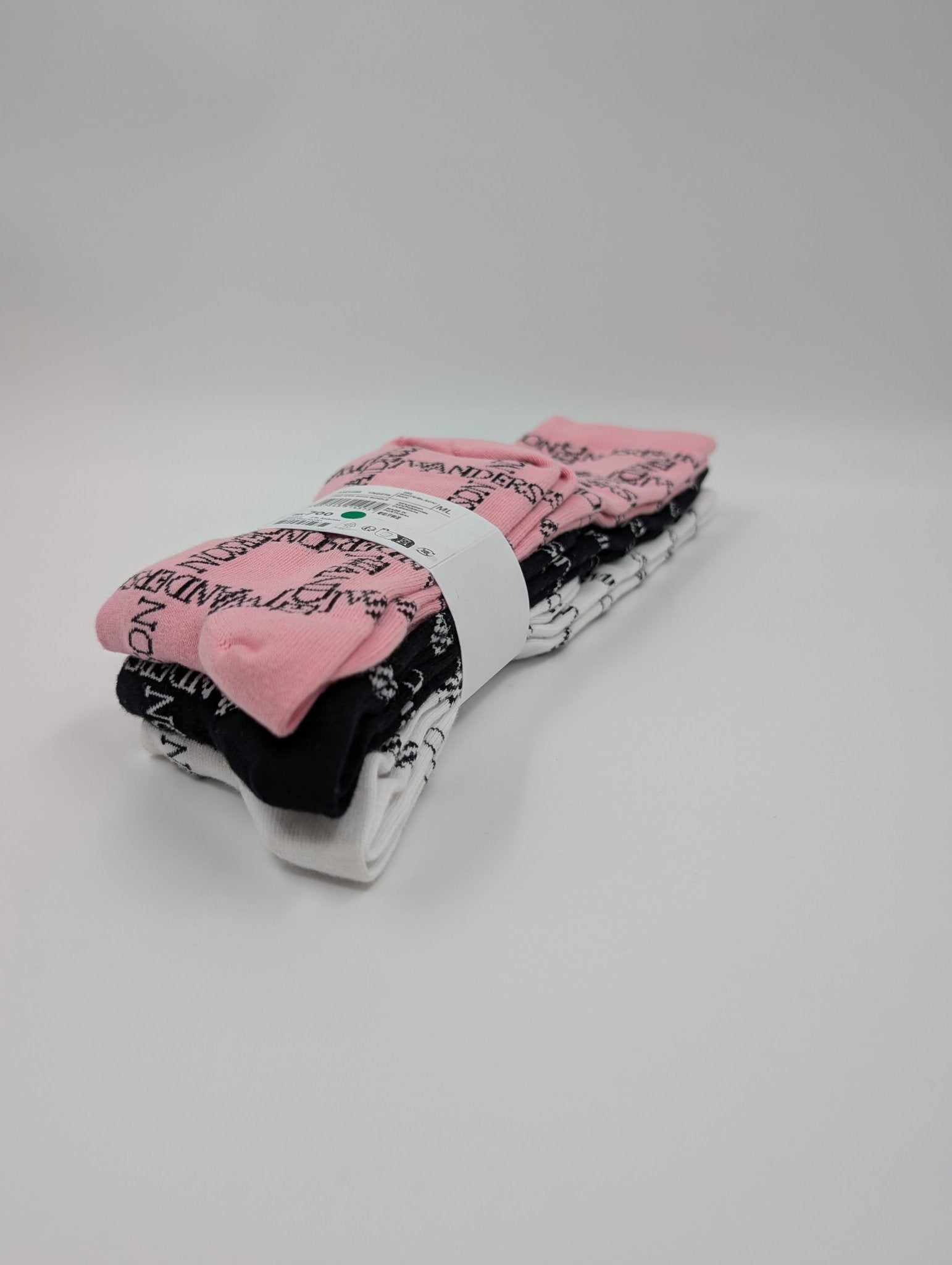 Das MAISON MARGIELA 3er Socken Pack umfasst drei einzeln gehaltene Paare in Schwarz, Weiß und Pink (3er Socken Pack: Schwarz, weiß und pink). Die drei Paare sind jeweils einfarbig in den genannten Farben gehalten. Es handelt sich um originale Markenware aus Überbeständen, angegeben unter der Marke J.W. Anderson, und wird zu attraktivem Preis angeboten.