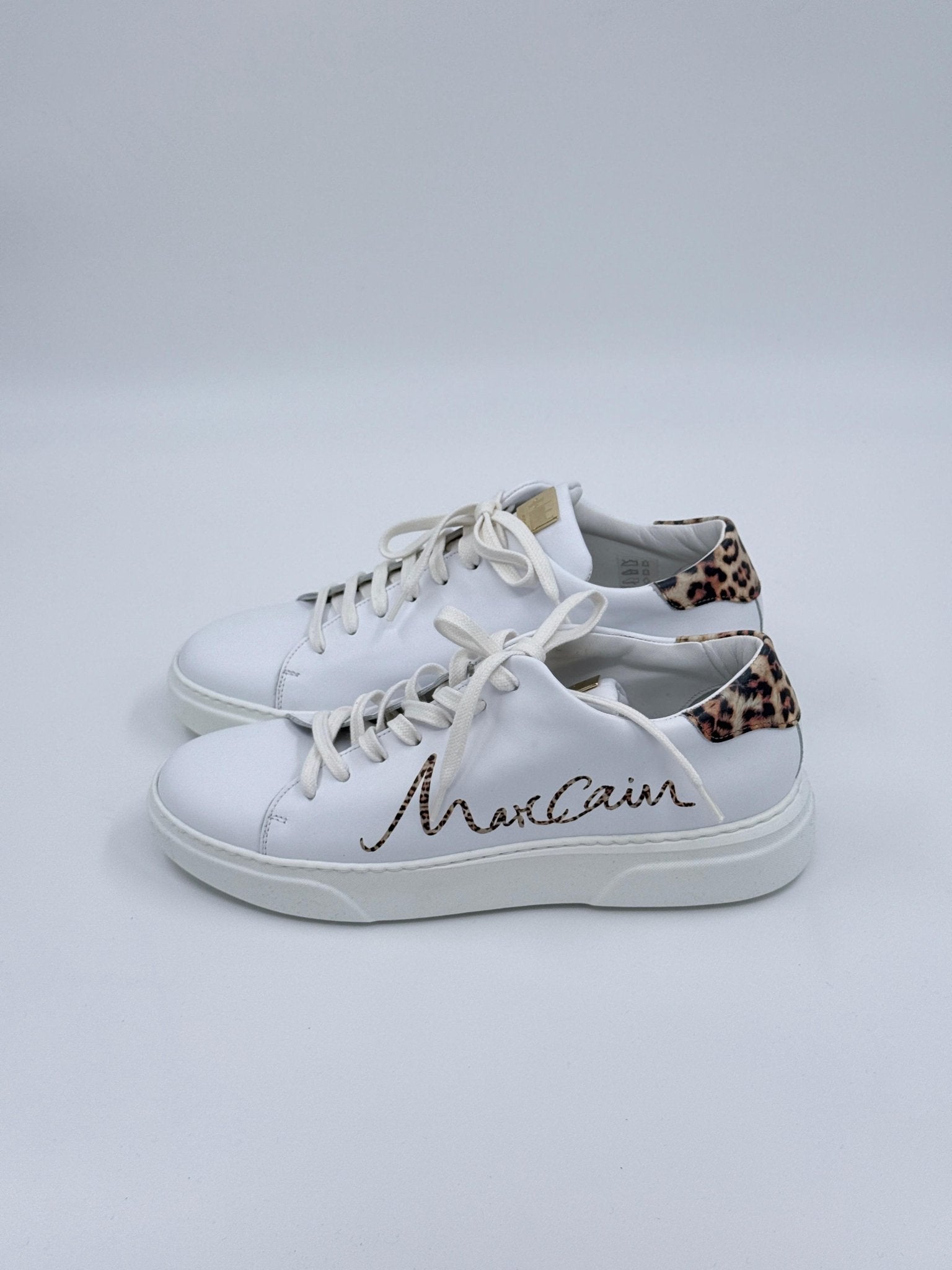 Marc Cain Cup Sole Sneaker mit Leo‑Schriftzug von Marc Cain, originale Damenware aus Überbeständen zu attraktivem Preis. Modellref.: 5JSH01L03 (5JSH01L03 SNE, 100) aus der Marc Cain Jubiläumslinie, Farbe white. Obermaterial: 100% Leder, Futter: 100% Leder, Außensohle: 100% Ethylenvinylacetat. Die Optik zeigt eine weiße Cup‑Sohle und den Leo‑Schriftzug.